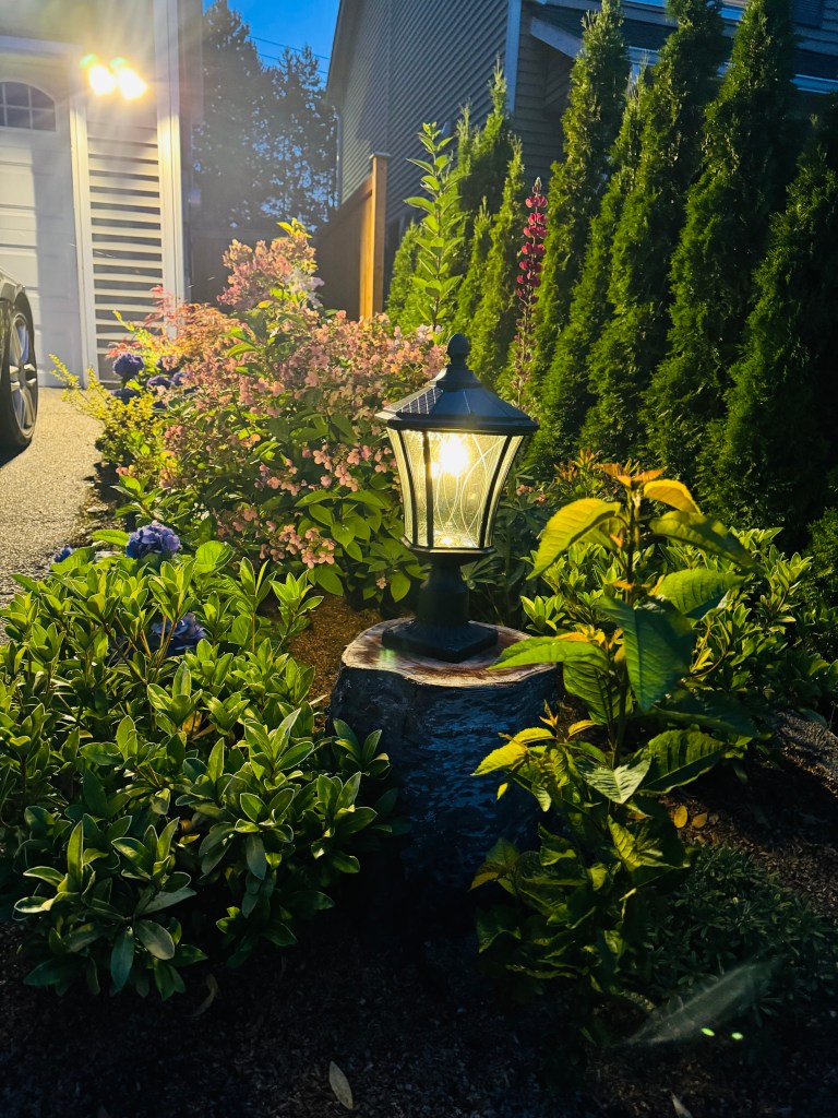 I’ve always wanted to place a solar light on the old stump, something simple and meaningful. My Cherry Blossom tree was beautiful, but over the years, it became too much to take care of. I finally cut it down and left the stump, then installed the solar light on its top.
